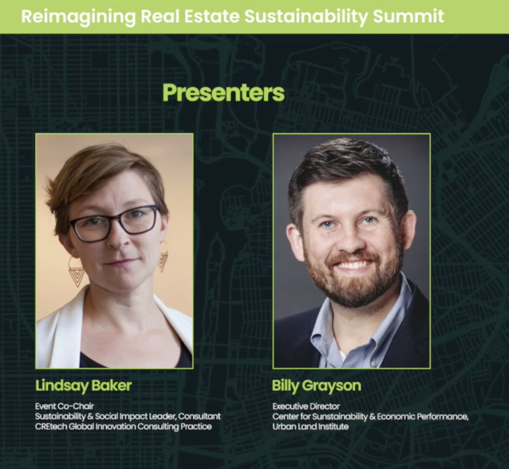 Lindsay Baker recently interviewed ULI's Billy Grayson for our virtual Sustainability Summit. Catch up on-demand as they discuss different financial products and mechanisms to "green" your portfolio and the role cities, policy and technology will have in getting to "zero".
