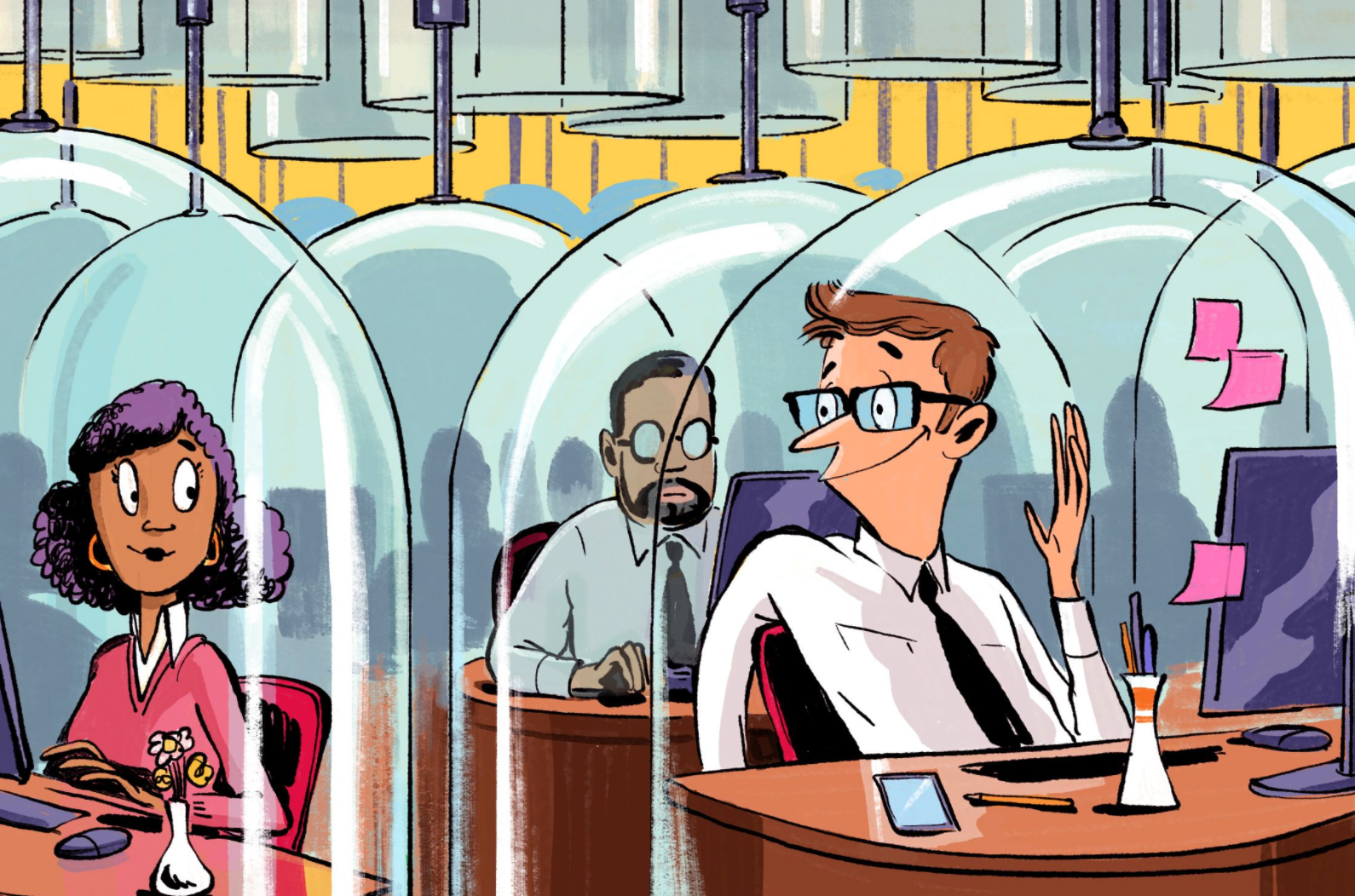 I keep reading that because of this crisis, the office of the future will be different, that we are all going to have to show up every other day, sit in enclosed space bubbles, eat lunch alone and ride elevators by ourselves. Stop me when any of this sounds bad. The office of the future sounds pretty much like heaven. Show up every other day? An elevator all to myself? That has been my dream for d...