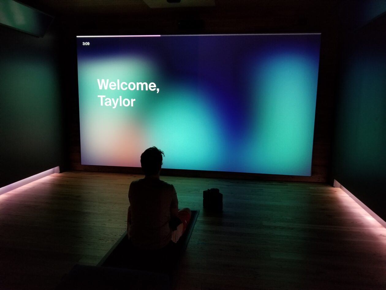 For 80 minutes on Thursday, in the midst of another busy day at work, I was transported to a different world. The ambient music and house-blended tea put me in the mood. The 84-degree room set the stage for physical and mental exercise with my virtual yoga instructor. And a luxurious shower, complete with botanical shampoo and egyptian towels, helped prepare me for re-entry into reality.