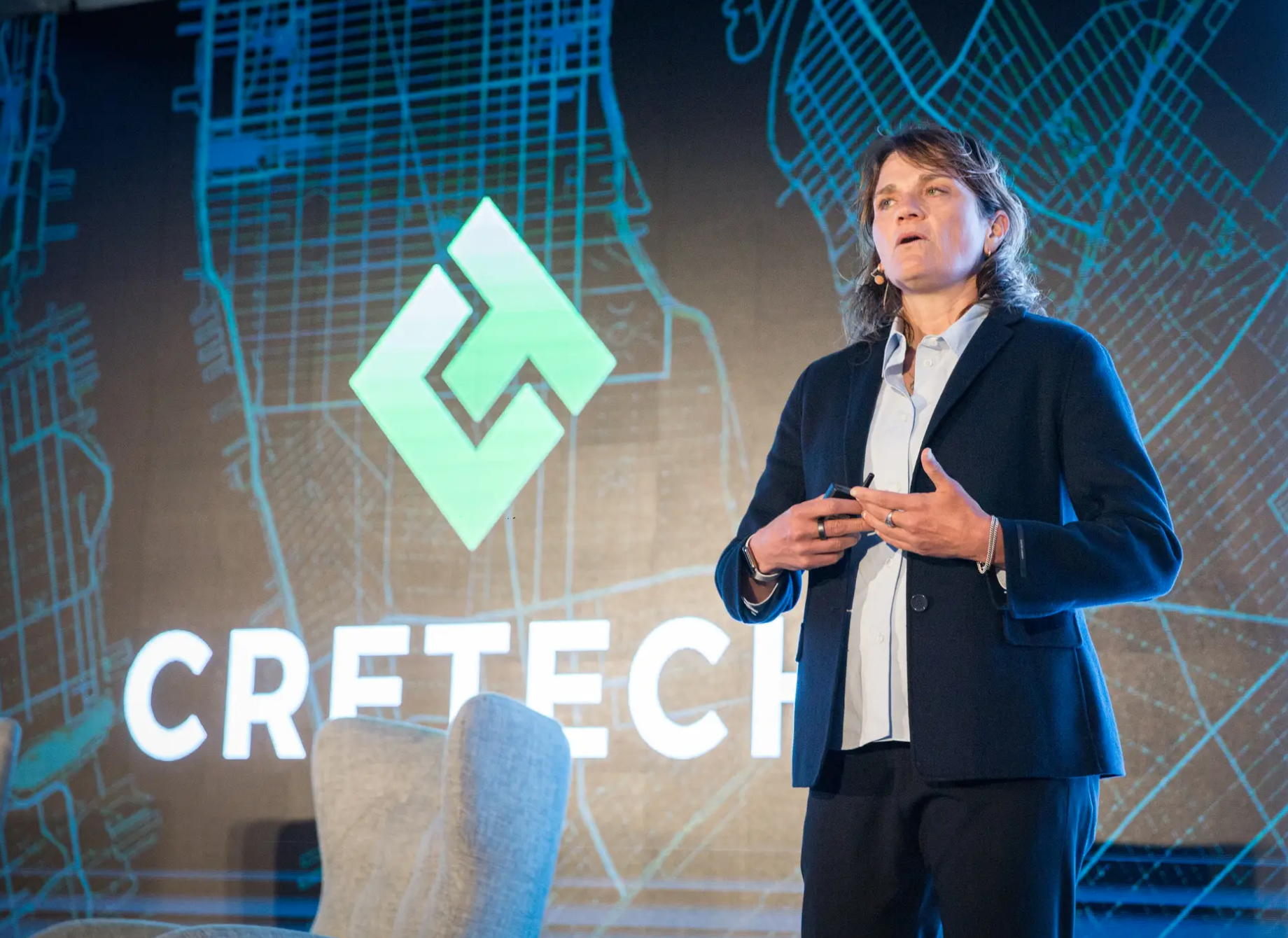 Lisa Picard, chief executive of Blackstone's EQ Office, outlined her view of the future of proptech and how real estate companies can put new tech to use at a presentation at a CREtech event last week.