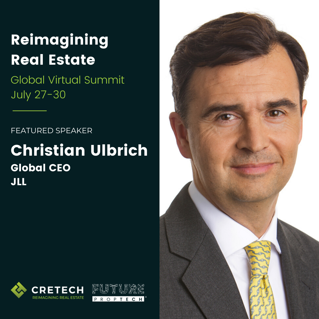 CREtech (cretech.com) and FUTURE PropTech, the largest intelligence platforms devoted to Reimagining Real Estate, announced today that Christian Ulbrich, Global CEO at JLL, will take the stage for the Reimagining Real Estate Virtual Global Summit, the ...