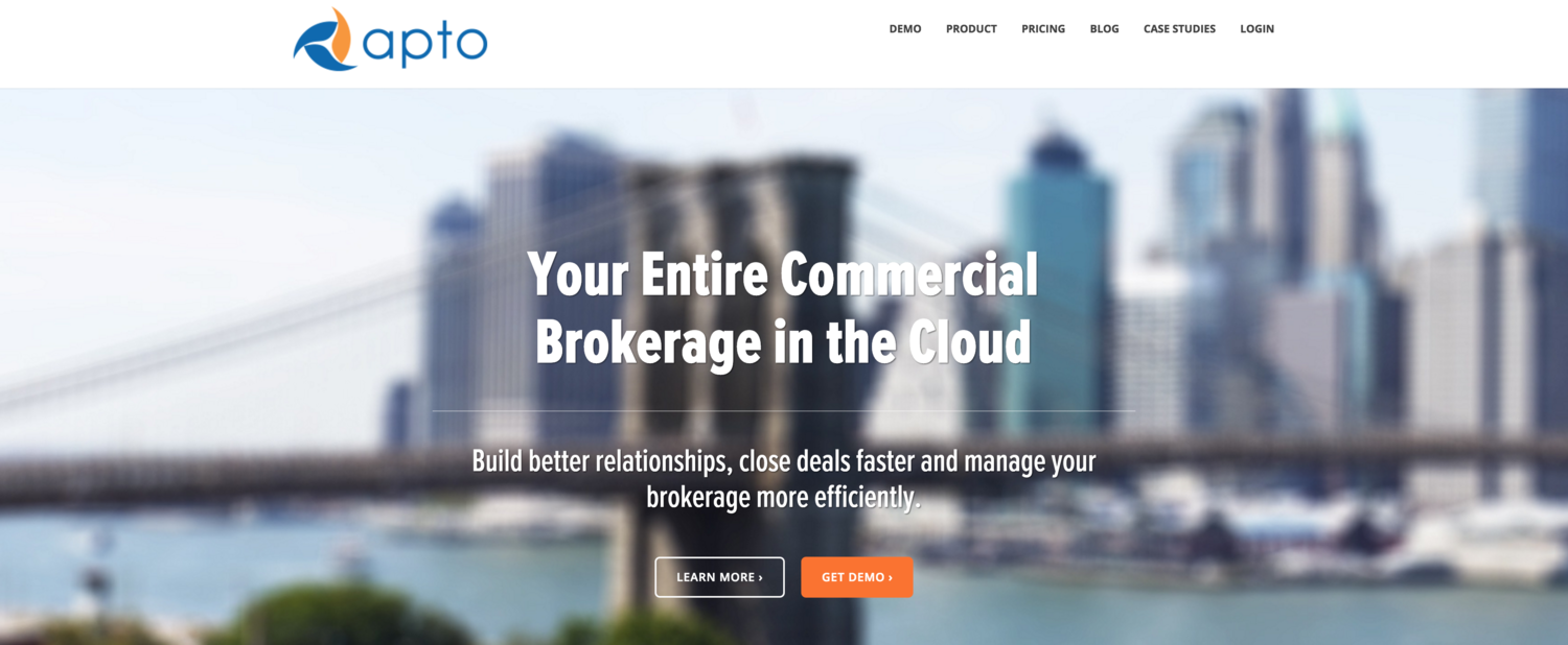 Out of frustration following our third implementation, I decided to build my own. I had an established brokerage business at that point and there wasn’t any intent to take it to market but after receiving an abundance of interest, Apto was created. I left the brokerage business in 2013 to focus on building Apto and growing the company.