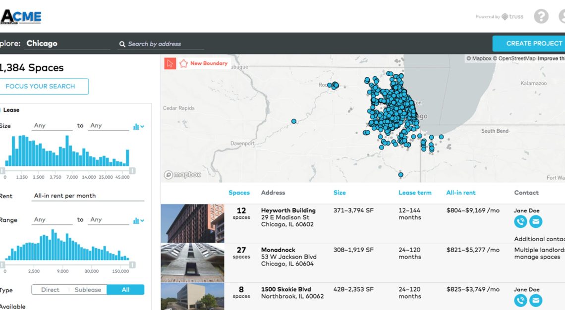CHICAGO – Truss, an award-winning marketplace for commercial real estate, announced today it is launching an enhanced version of TrussCRE, a listing and transactional marketplace for brokers. To help brokers in Chicago close more deals faster, the platform boasts two enhanced capabilities: the ability to conduct and adjust a real-time market survey and share results electronically with clients.